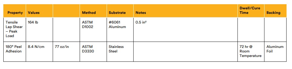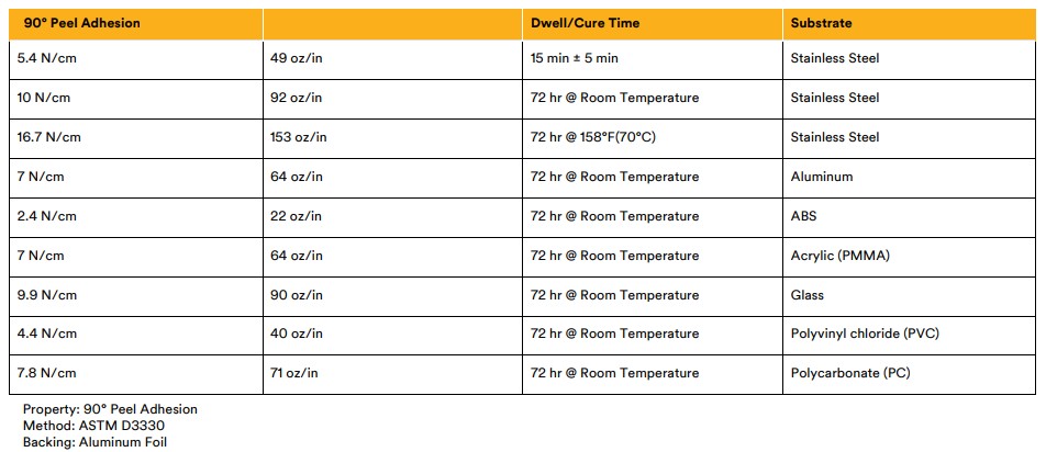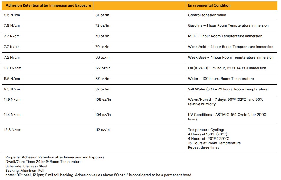 Chemical Resistance – When properly applied, nameplate and decorative trim parts will hold securely after exposure to numerous chemicals including oil, mild acids and alkalis.