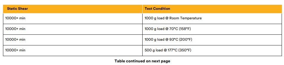Water Resistance – Immersion in water has no appreciable effect on the bond strength. After 100 hours at room temperature, the high bond strength is maintained. Temperature Cycling Resistance – High bond strength is maintained after cycling four times through: