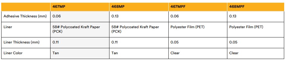 When bonding a thin, smooth, flexible material to a smooth surface, it is generally acceptable to use 2 mils of 3M™ Adhesive 200MP. If a texture is visible on one or both surfaces, the 5 mil 3M adhesive 200MP would be suggested. If both materials are rigid, it may be necessary to use a thicker adhesive to successfully bond the components. 3M™ VHB™ Acrylic Foam Tapes may be required (please refer to the data page 70-0709-3830-6).